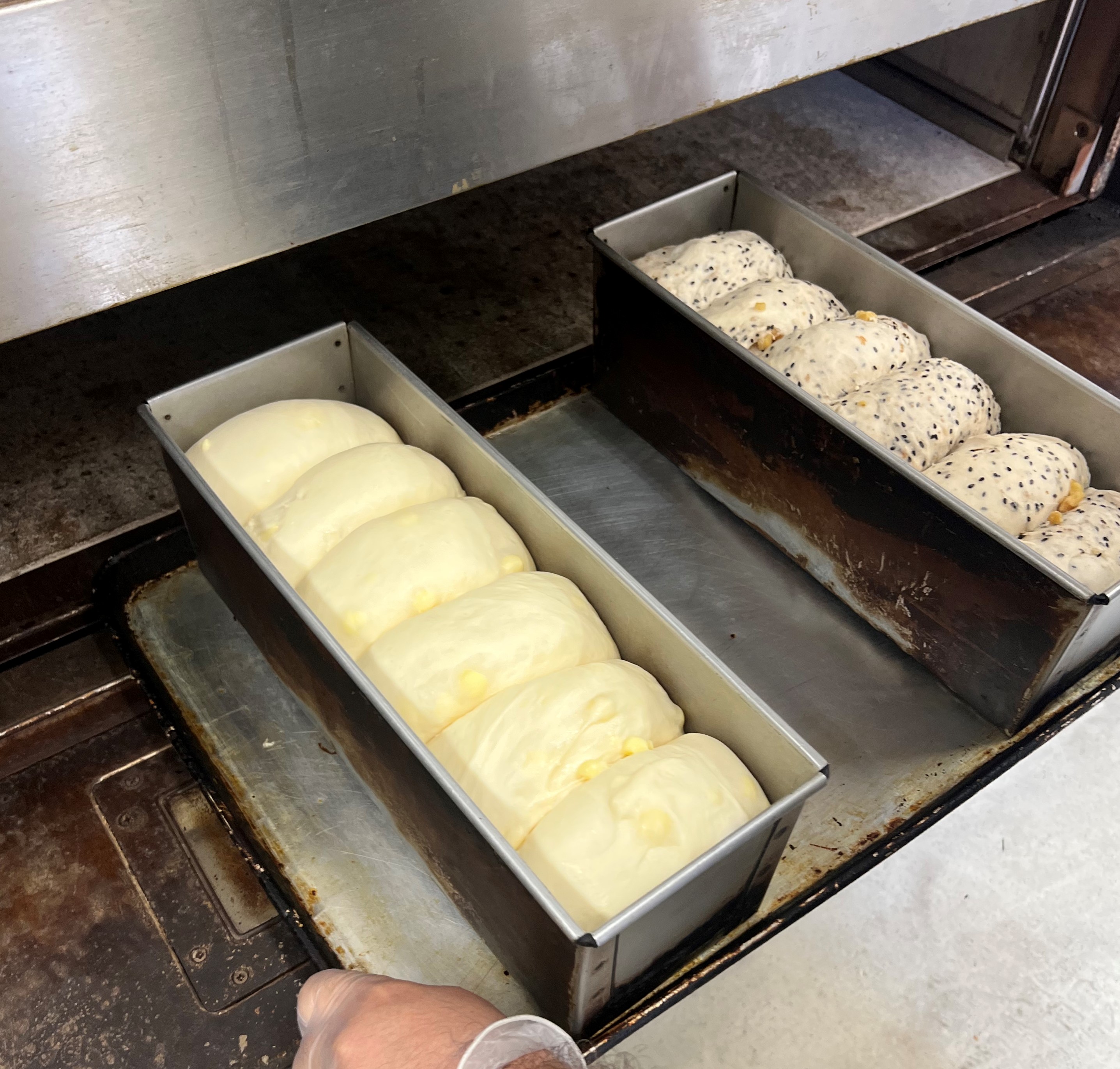 「食パン作りに取り組んでいます。 生地を練る段階から、質感とか違いが分かるようになってきました。目標は食パンの山の部分を均一に成型することですね。日によって高さが変わるので難しいところですね。」